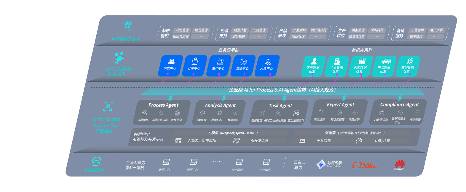 端到端的一站式AI工作空间深度融合了从企业战略规划到日常经营的全流程业务板块,,定向解决车企内部领域多、、、、部门多、、、链条长、、、场景碎片化等难题,,,支持车企快速构建以AI为核心的生产力写作体系,,,实现任务执行与AI能力的无缝集成与交互